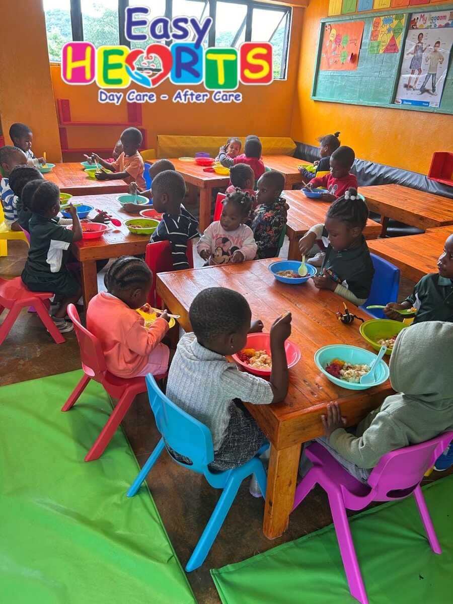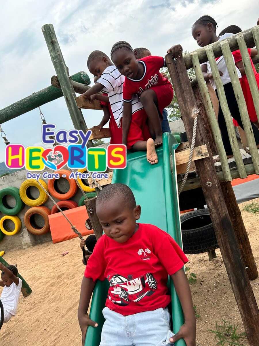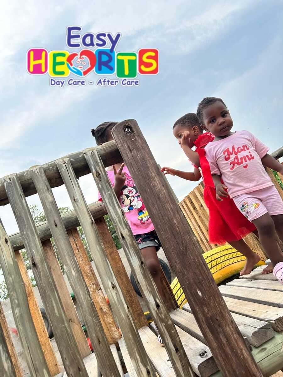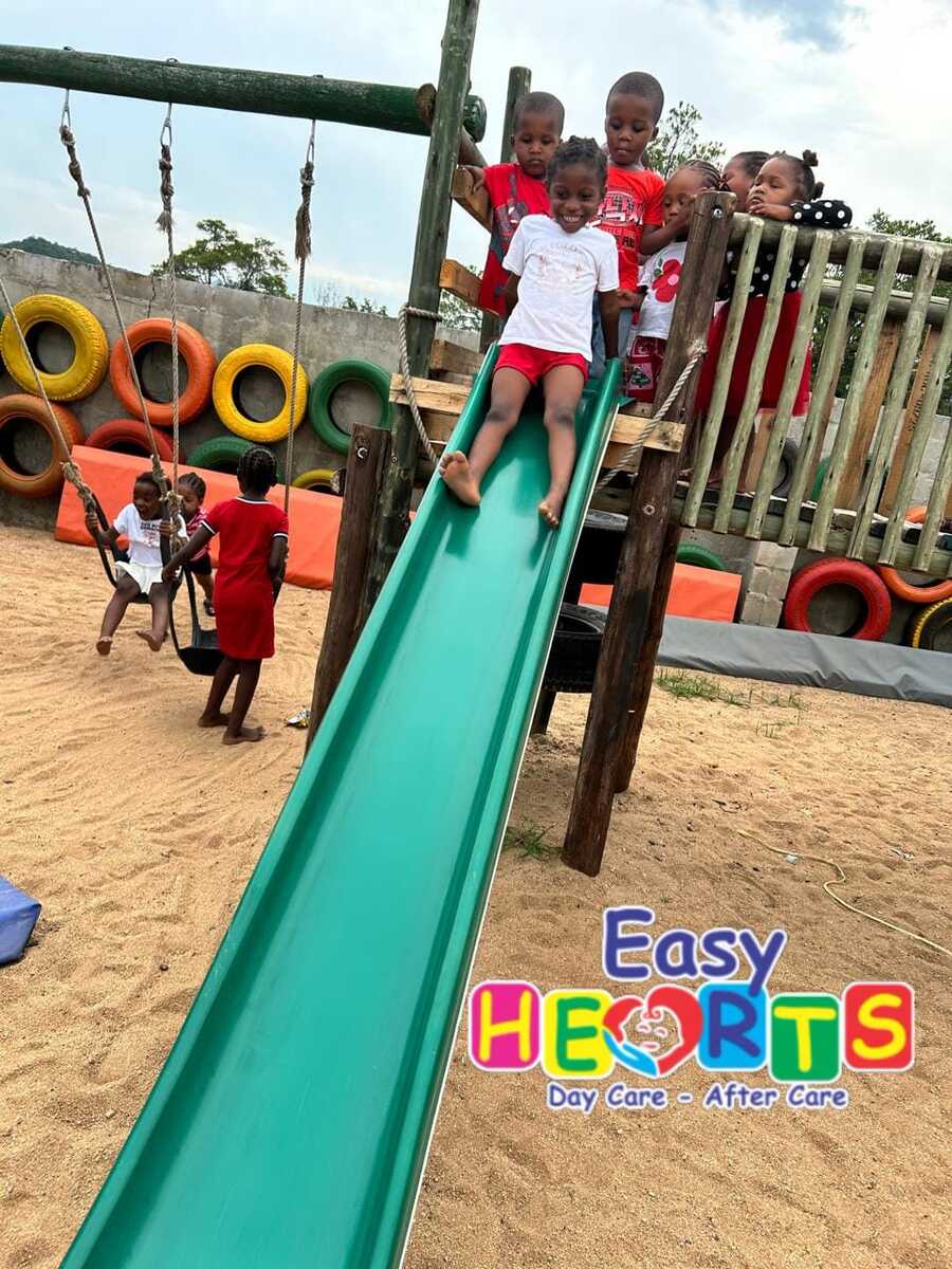 Easy Hearts Daycare's play area is designed to accommodate children of all ages, from 0 to 7 years. It features a variety of play equipment, including swings, slides, climbing frames, sandboxes, jumping frames, and a sand pit.